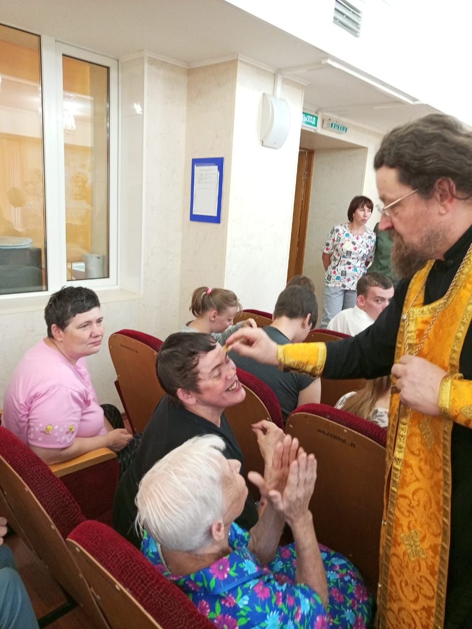 Отец Вадим вознёс молитву, помазал детей и работников учреждения святым елеем, после чего произнёс пастырское слово. Всем присутствующим были вручены подарки.