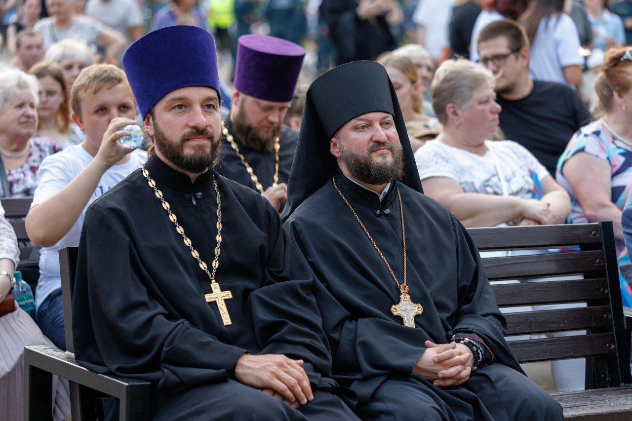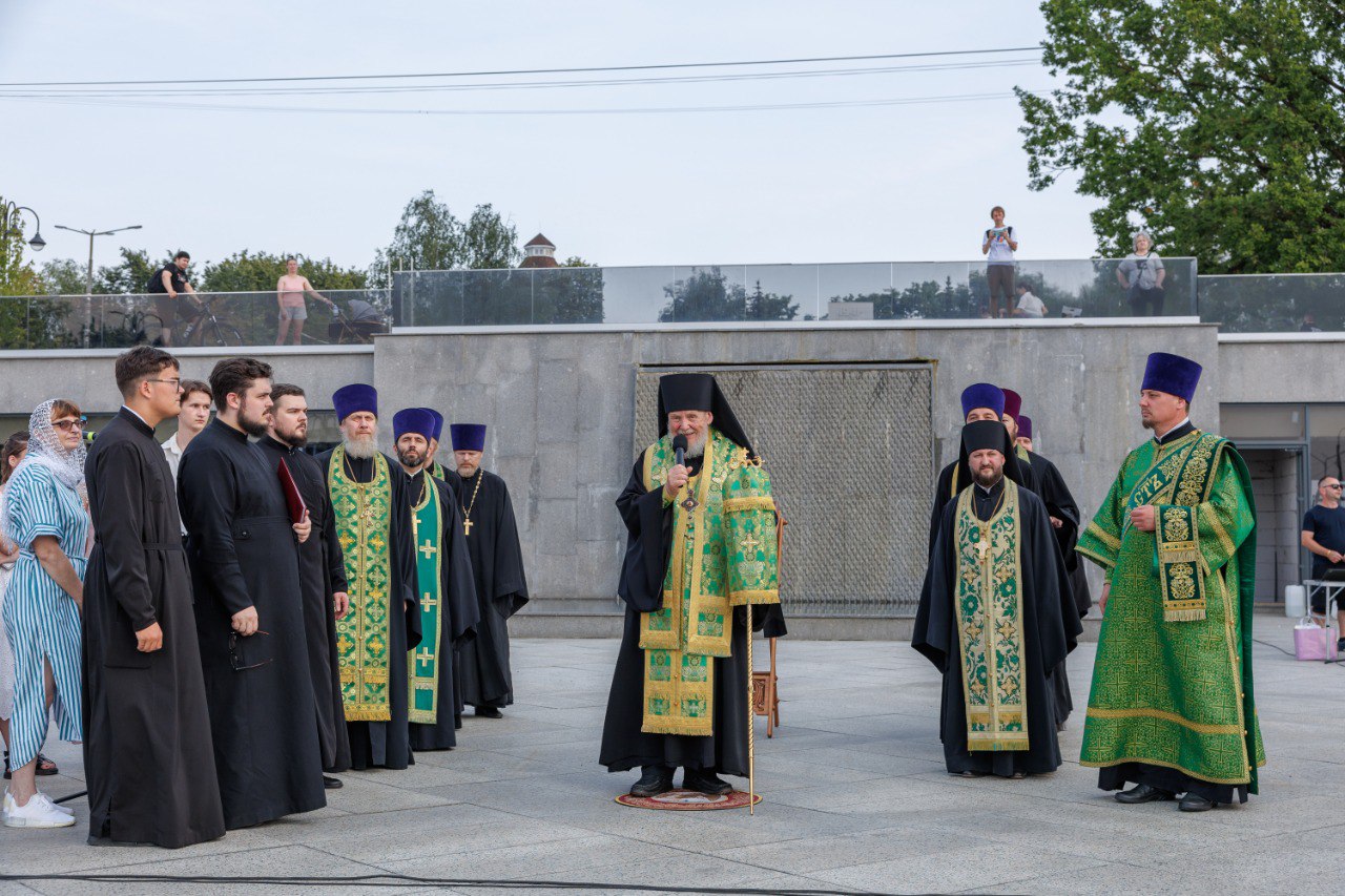 Затем на городской Фонтанной площади епископ Николай совершил молебен святым благоверным князьям Петру и Февронии Муромским.