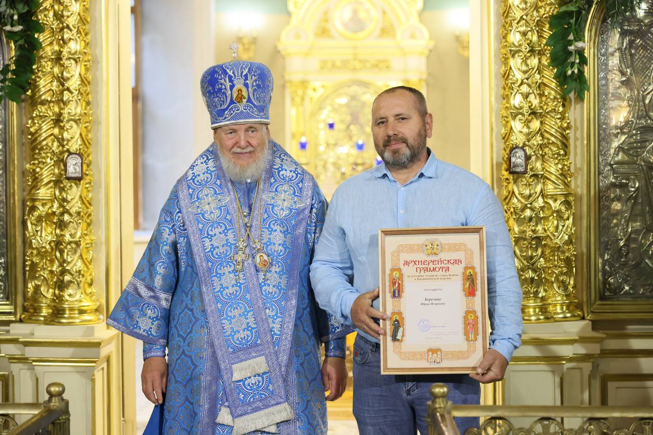 Затем Его Преосвященство обратился к сослужившему духовенству и молящимся с архипастырским словом, после чего вручил архиерейские грамоты благотворителям и активным труженикам храма.