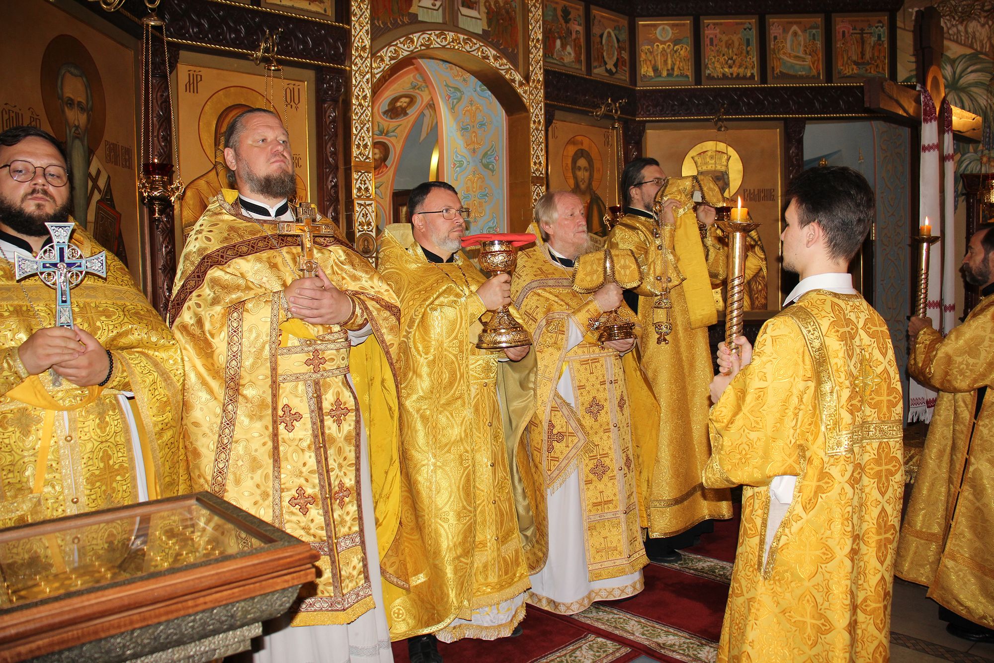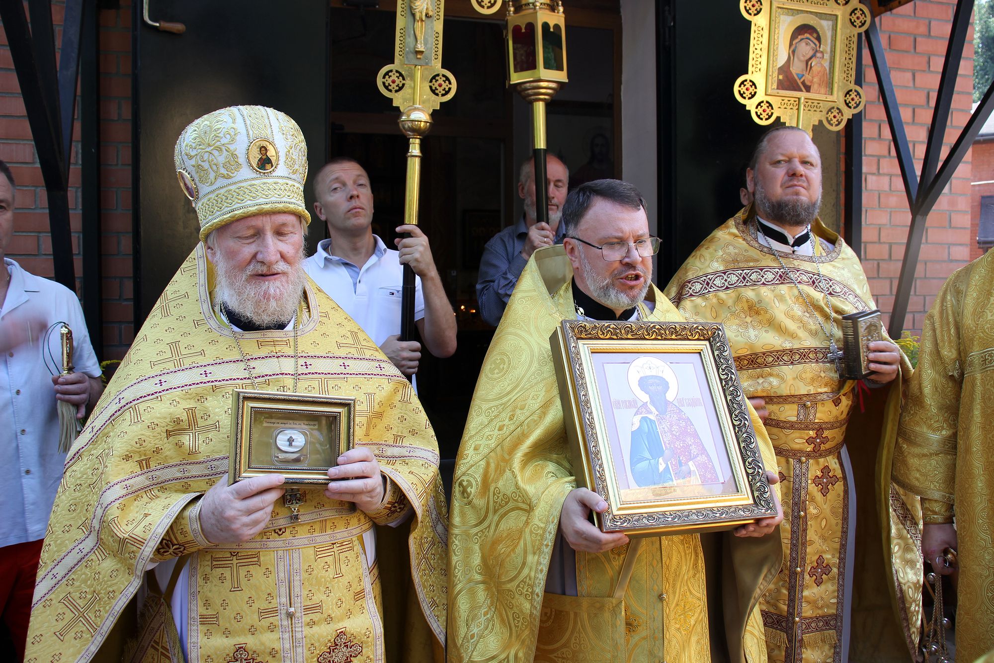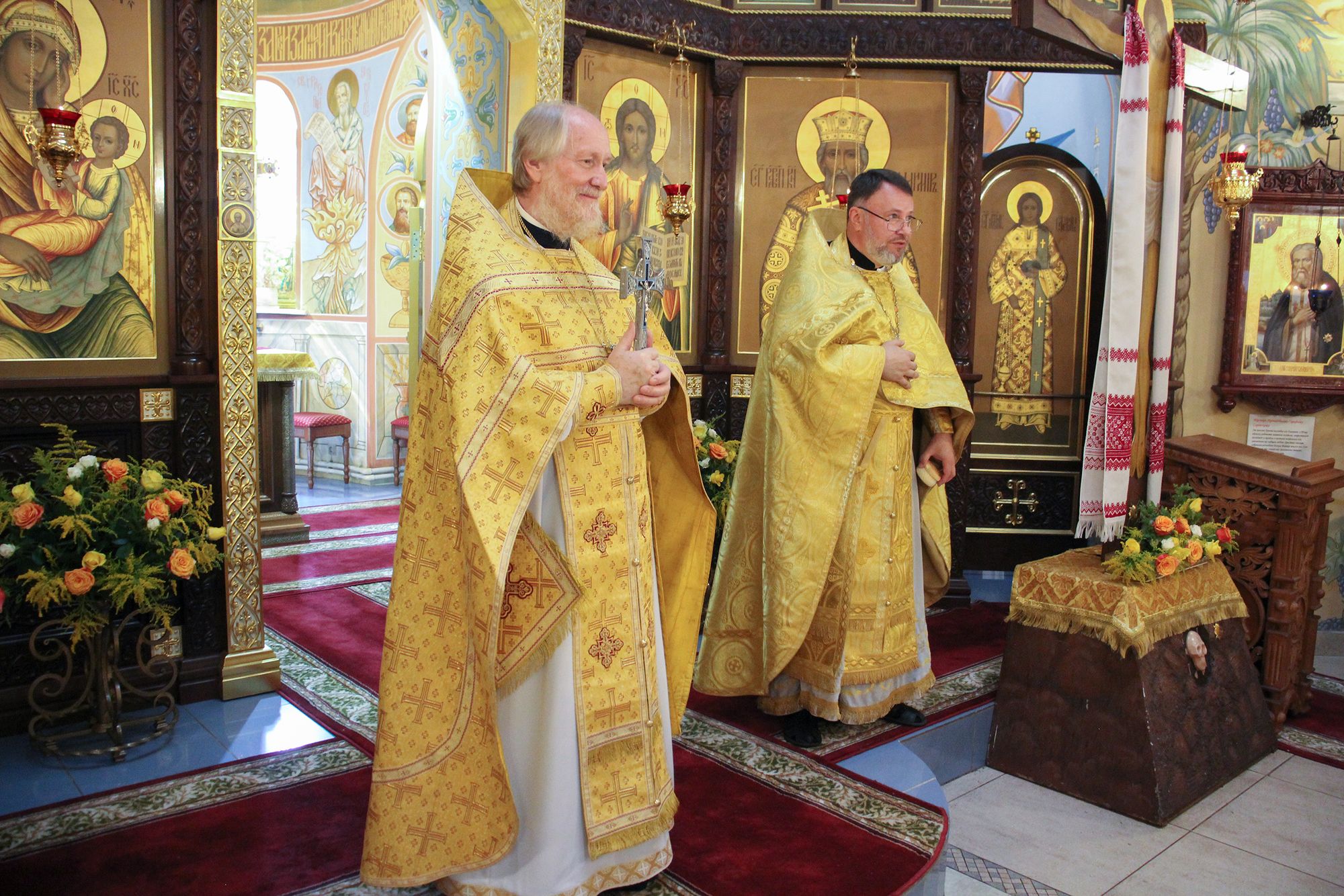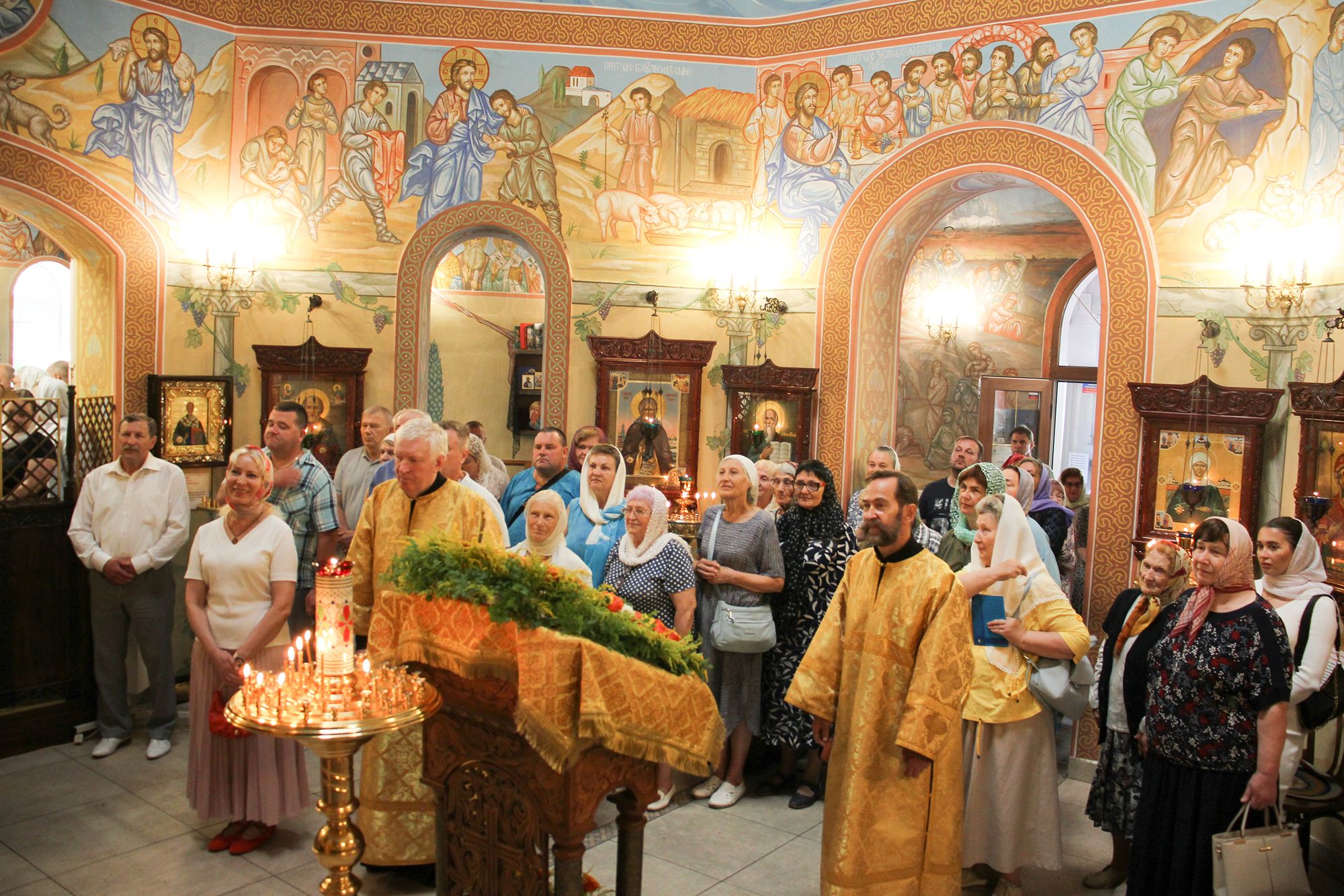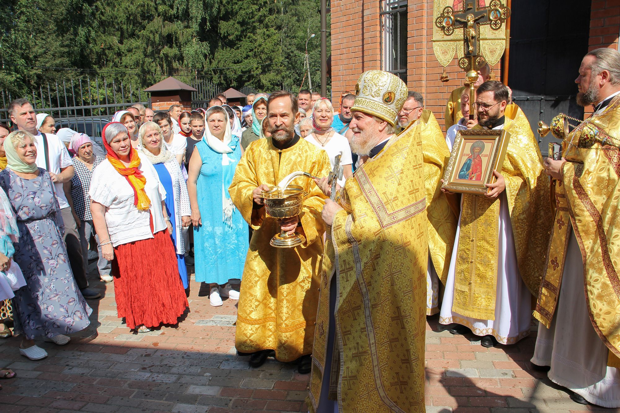 По окончании Литургии и крестного хода отец Андрей поздравил священнослужителей и богомольцев с престольным праздником.
