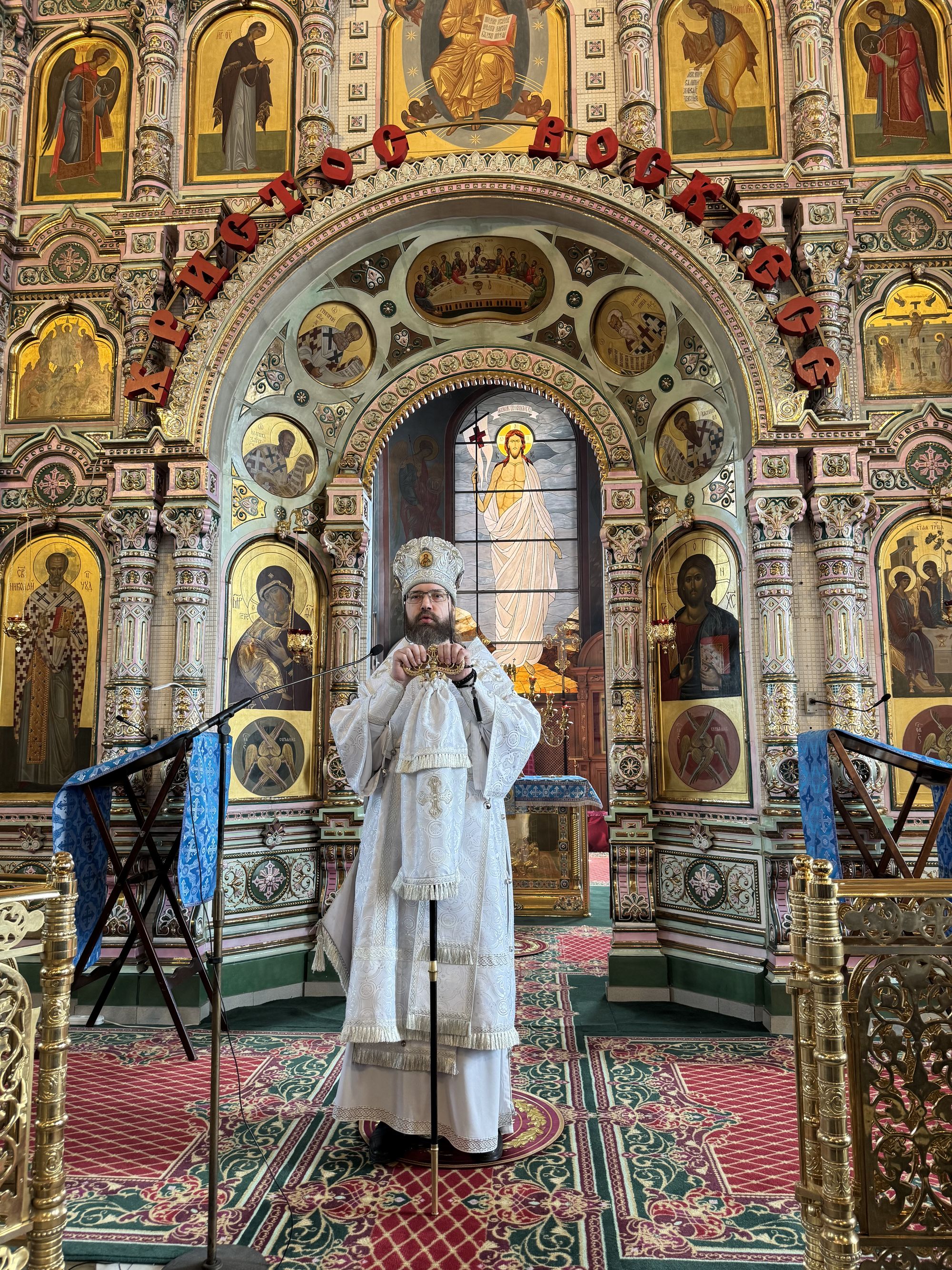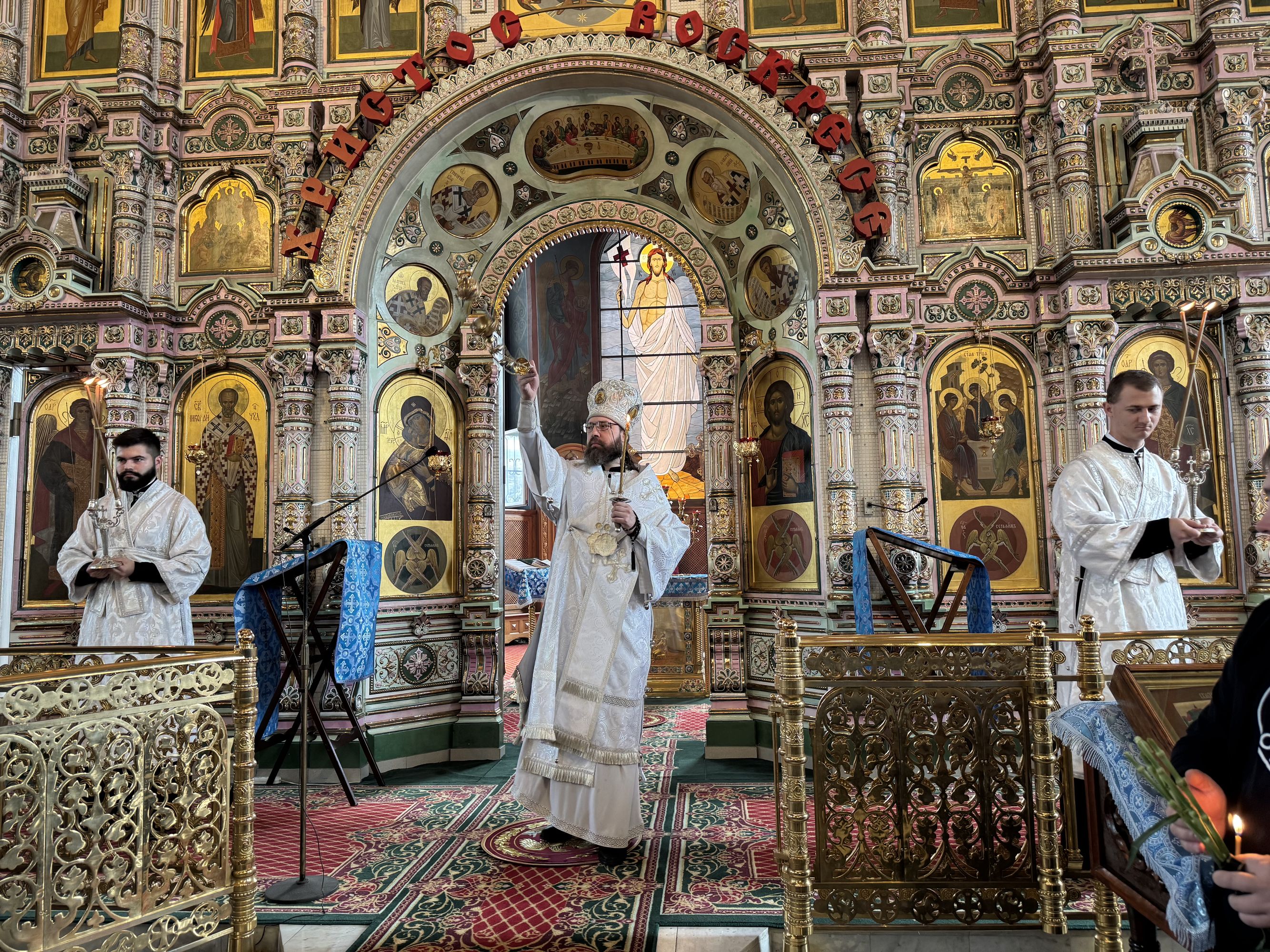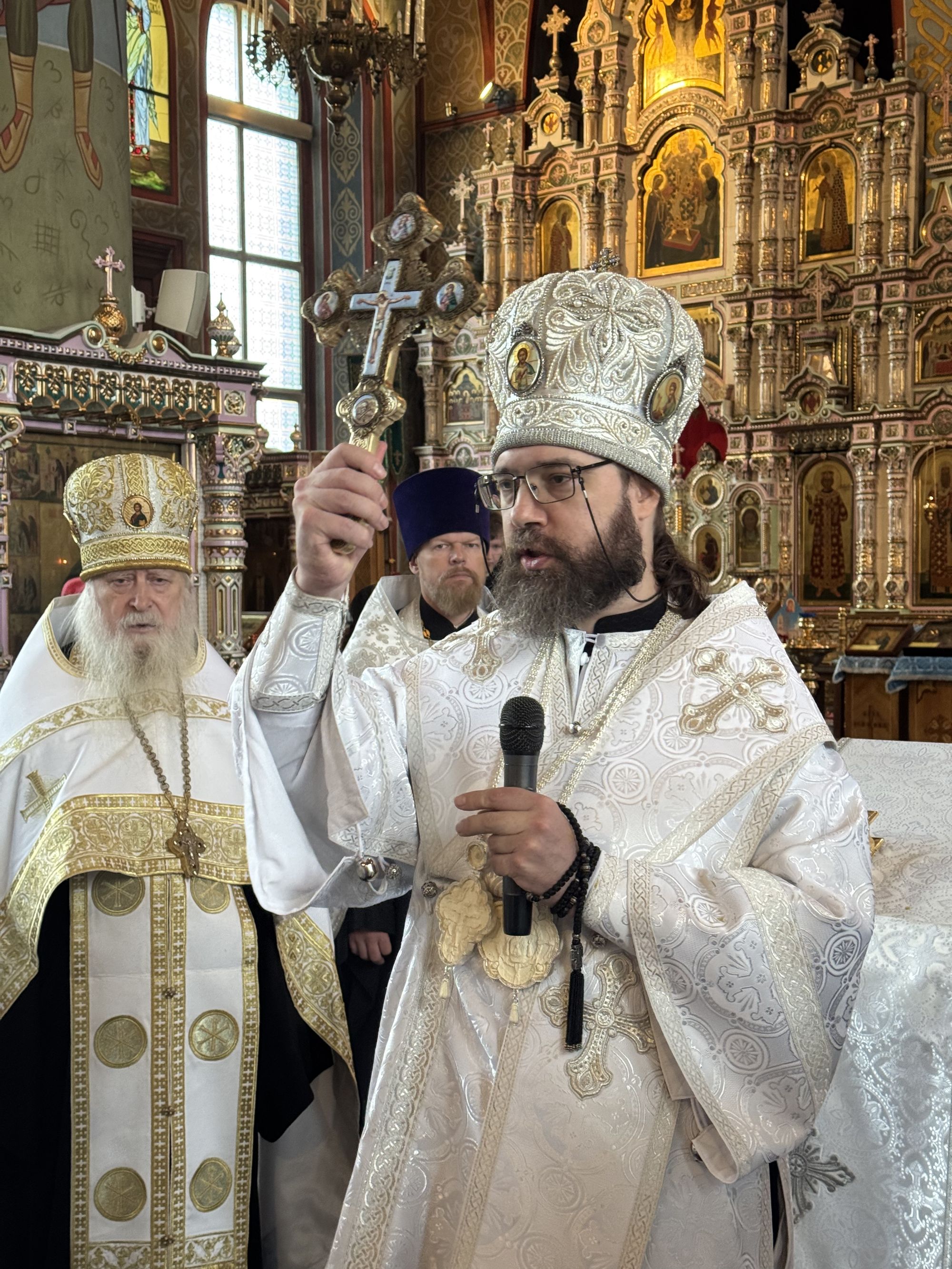 Владыке сослужили благочинный Щёлковского церковного округа протоиерей Андрей Ковальчук, духовник Русской общины и Православной общины Москвы архимандрит Дорофей (Вечканов), настоятель Серафимовского храма города Щёлково священник Виталий Крикота и клирик Троицкого собора города Щёлково священник Димитрий Медведев.