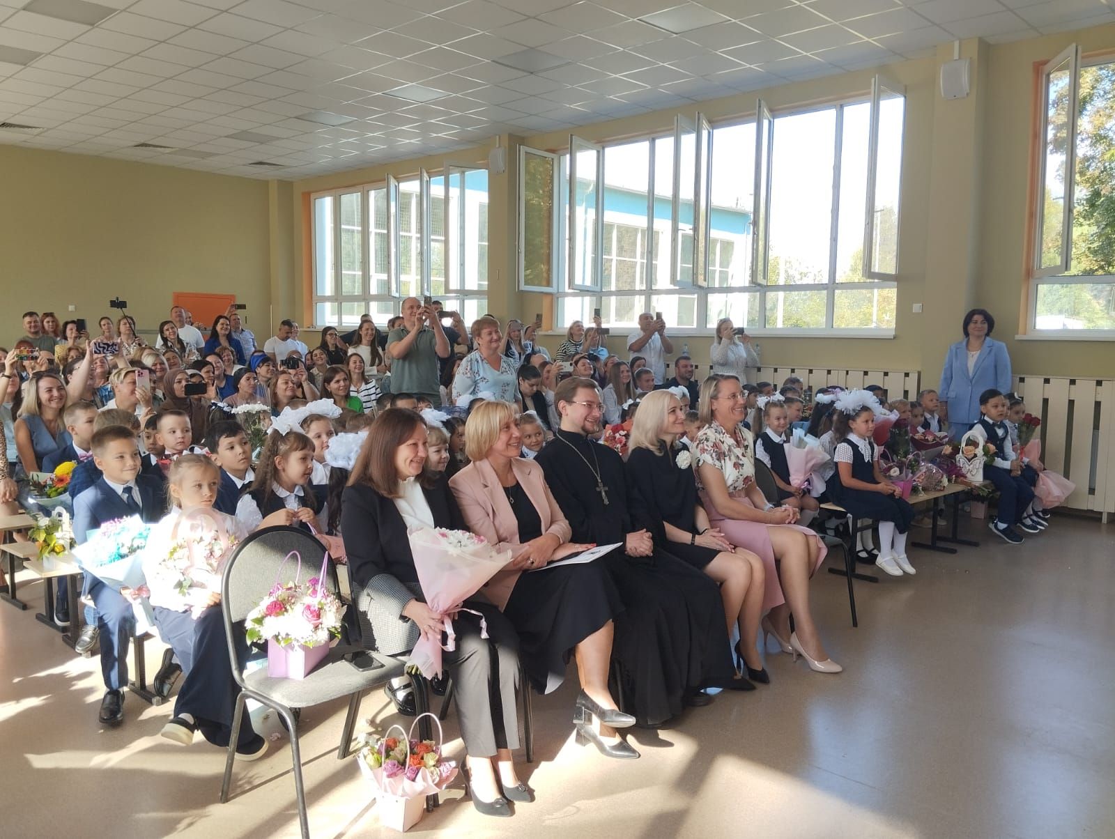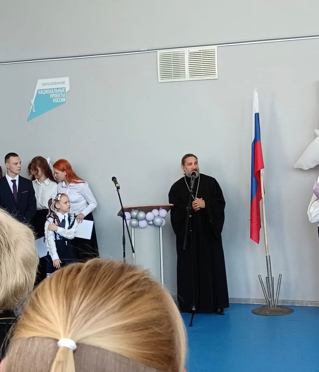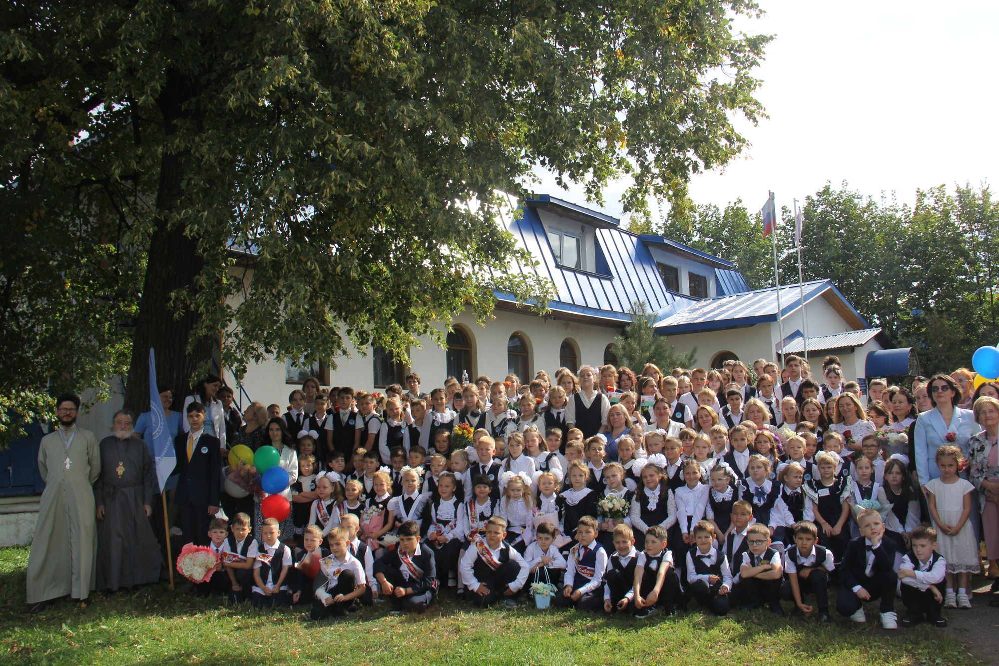 В торжественной линейке в гимназии апостола Иоанна Богослова села Анискино приняли участие духовник гимназии протоиерей Сергий Казаков, 188 гимназистов, в том числе 34 первоклассника.