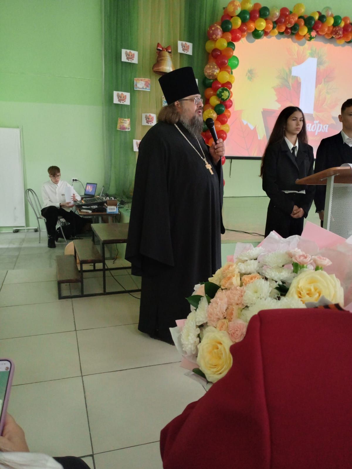 В лицее Орехово-Зуева с приветствием обратился настоятель Георгиевского храма священник Димитрий Филин.