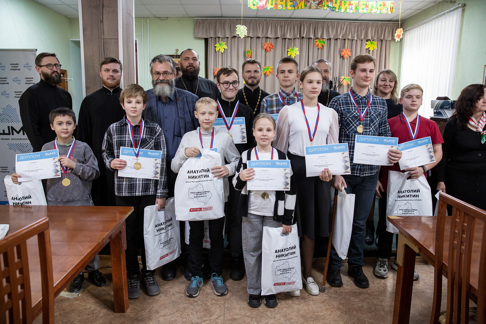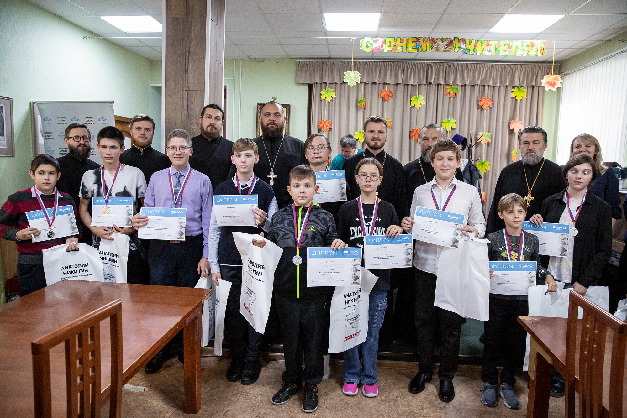 4 октября по благословению Патриаршего наместника Московской митрополии митрополита Крутицкого и Коломенского Павла состоялся Межъепархиальный (финальный) этап турнира по русским шашкам среди воспитанников воскресных школ Московской митрополии, посвященный празднованию 100-летия со дня блаженной кончины святителя Тихона, Патриарха Московского и всея Руси. Соревнования прошли в помещении воскресной школы Троицкого собора города Щёлково.