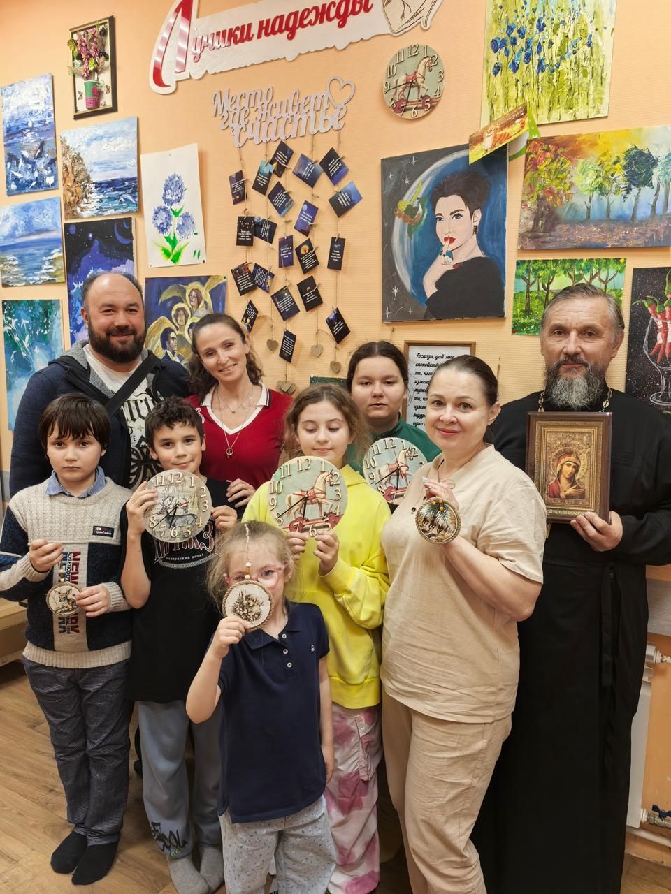 Настоятель Троицкого храма деревни Аверкиево священник Павел Скворцов посетил организацию поддержки граждан «Лучики надежды», где поздравил воспитанников и преподнёс им иконы Пресвятой Богородицы «Скоропослушница».
