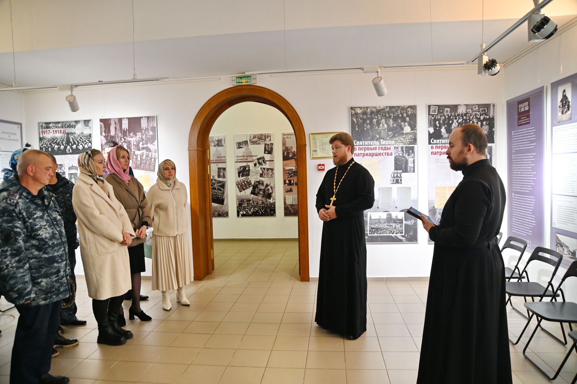 В актовом зале приходского дома диакон Илия Кузнецов ознакомил слушателей с экспозицией «Кто ны разлучит от любве Божия», посвящённой 100-летию со дня блаженной кончины святителя Тихона, патриарха Московского. Отец Илья рассказал о жизненном пути святого, о его избрании на первосвятительский престол и испытаниях, которые легли на его плечи.