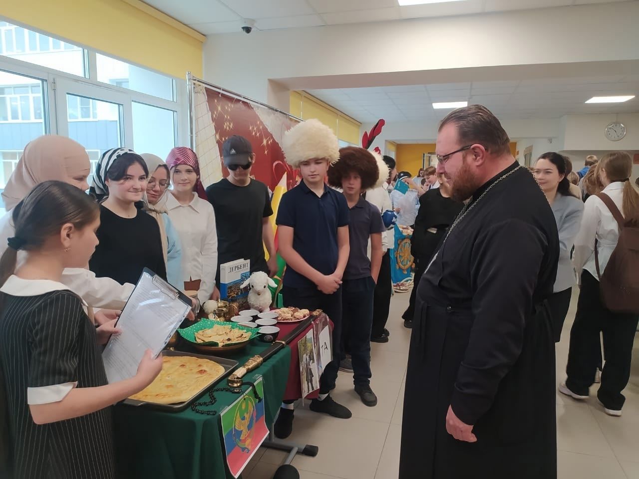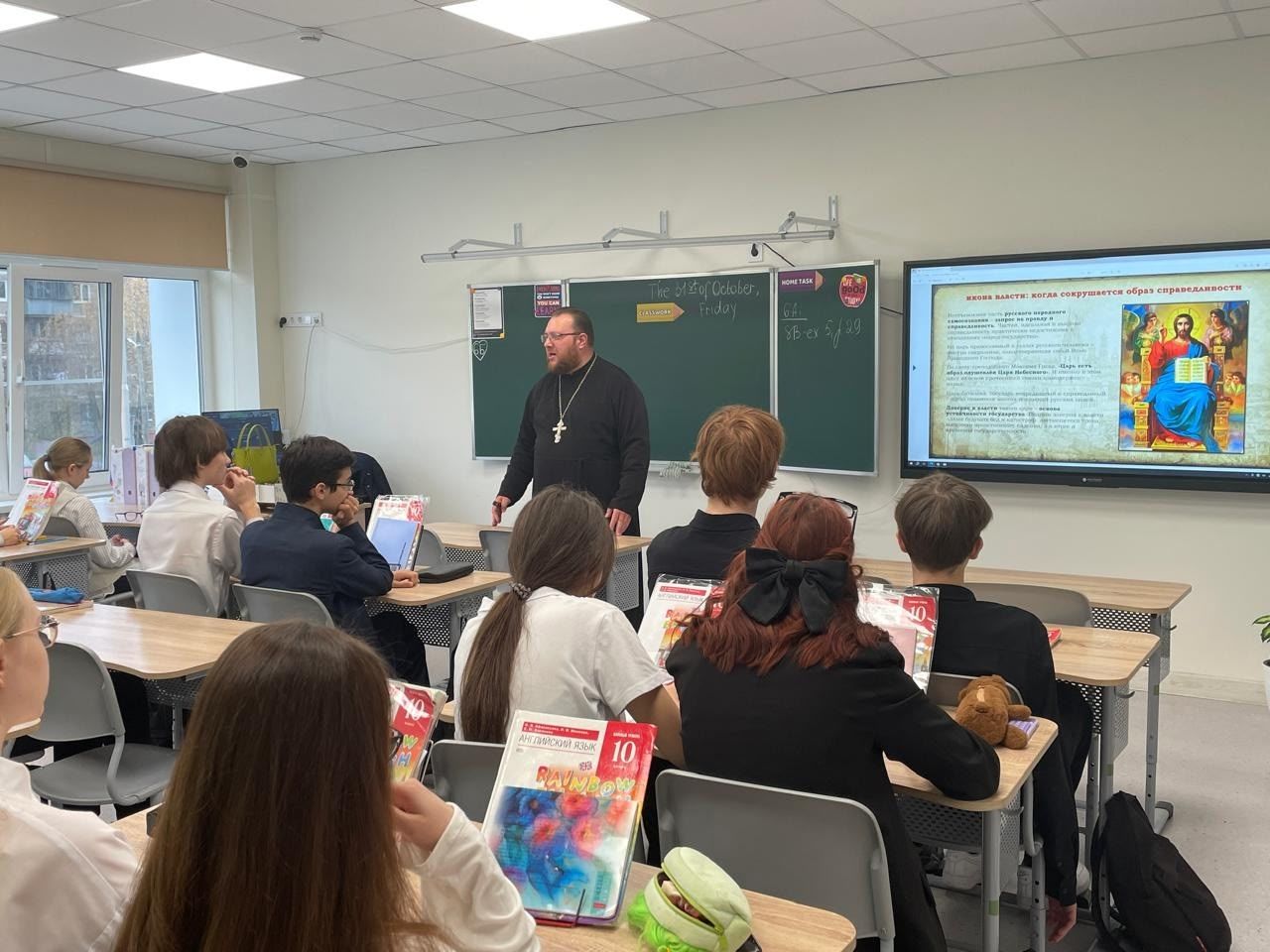 В этот же день в Давыдовской гимназии состоялась встреча настоятеля Михаило-Архангельского храма деревни Давыдово священника Антония Готмана с учащимися старших классов.
