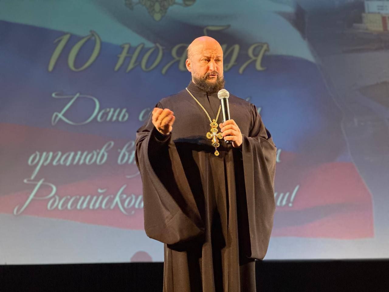 Благочинный Орехово-Зуевского церковного округа иеромонах Андрей (Коробков) поздравил сотрудников, офицеров и ветеранов с профессиональным праздником и пожелал всем помощи Божией.