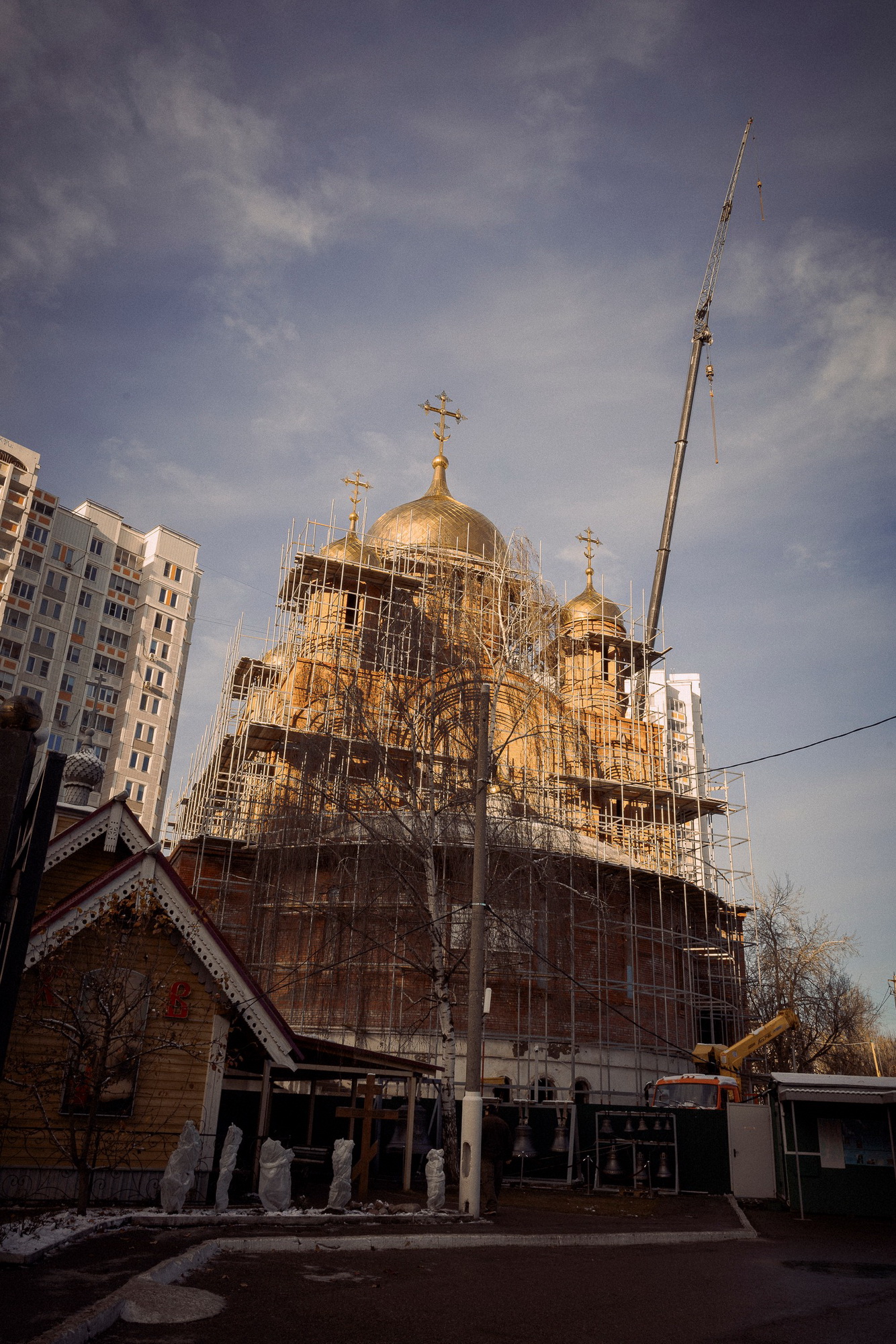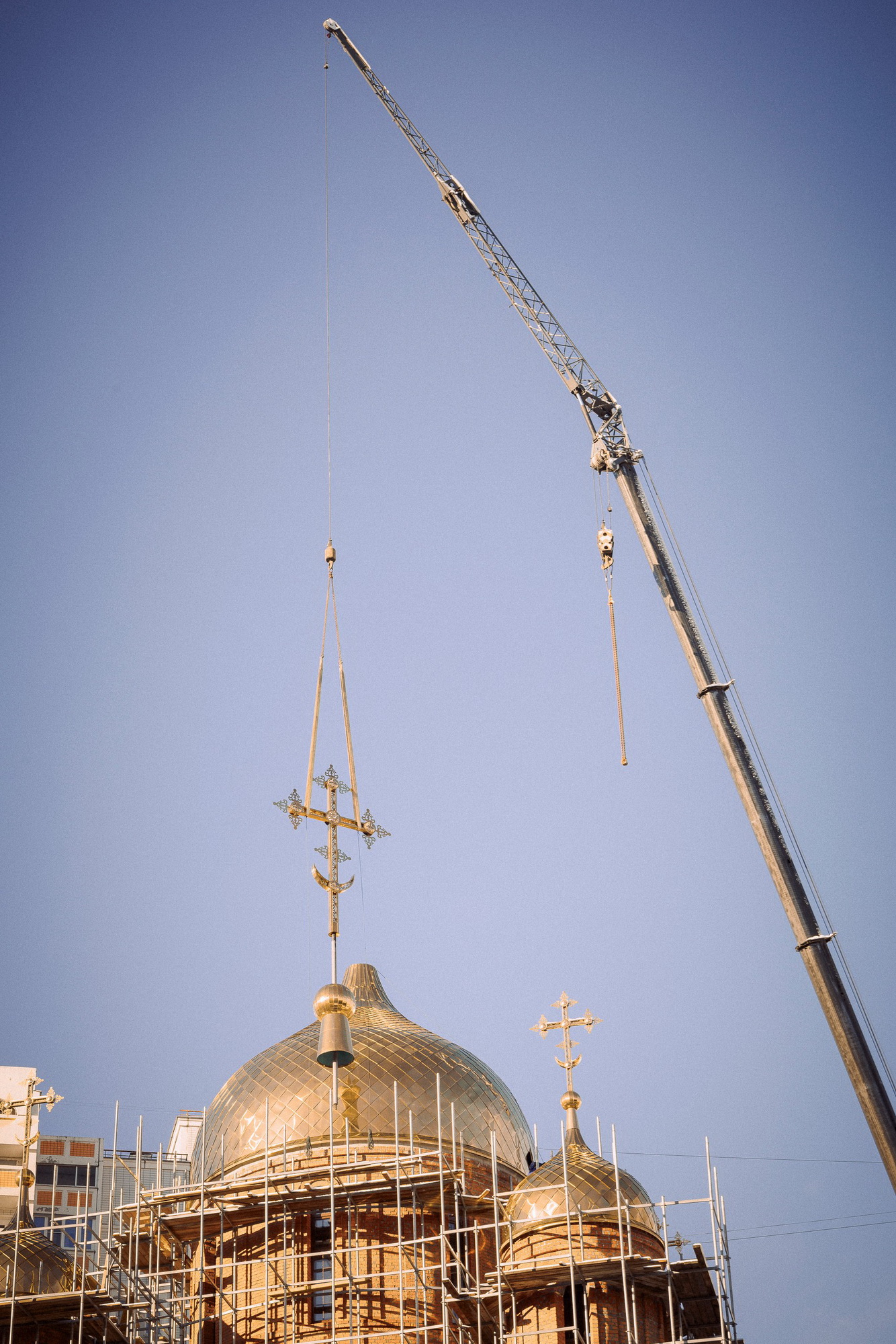 В завершение состоялось водружение освящённого креста на центральный купол храма.