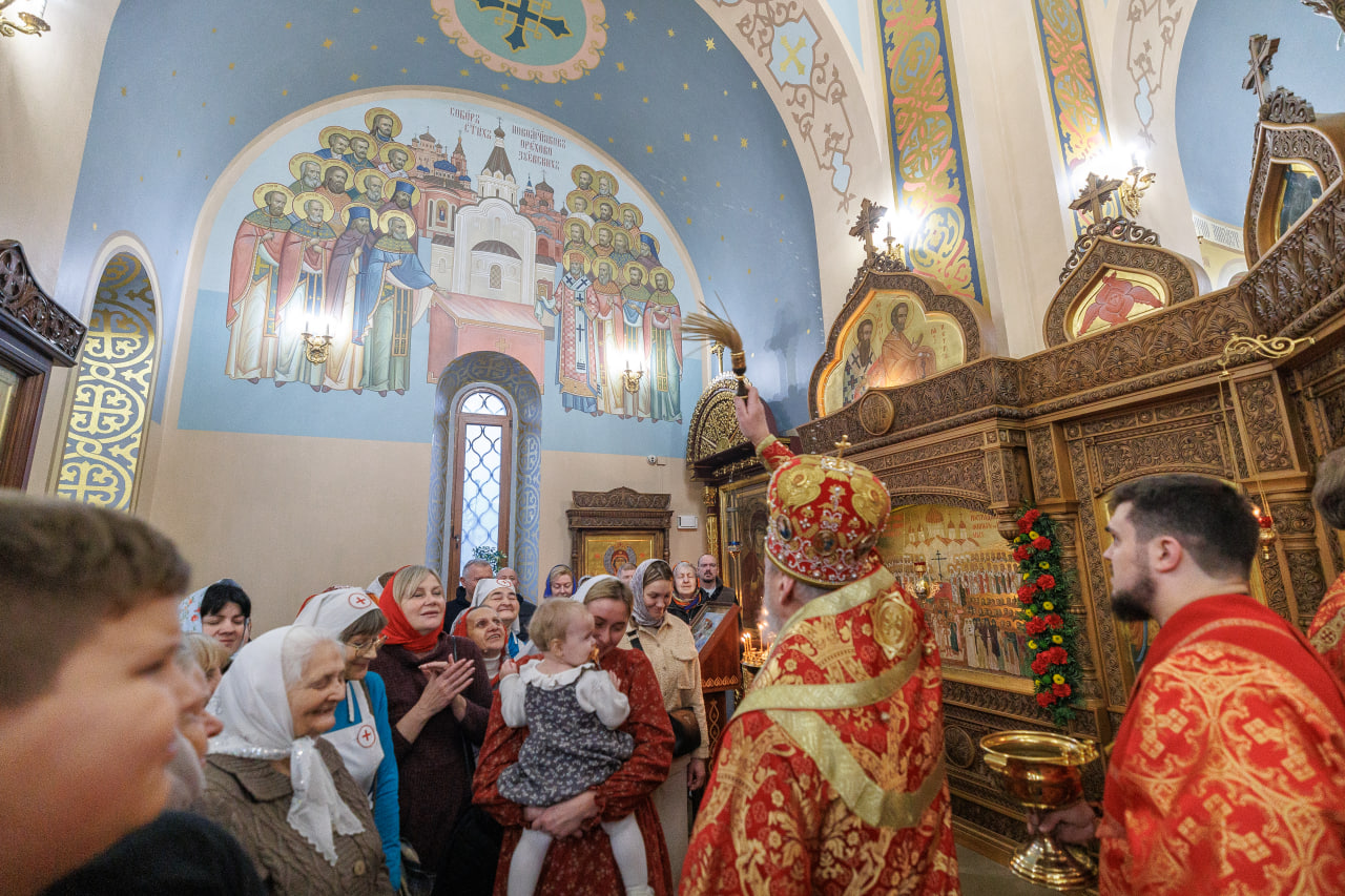 По окончании Литургии Его Преосвященство совершил освящение росписи храма, завершённую к дню памяти священномученика Никиты, епископа Орехово-Зуевского.