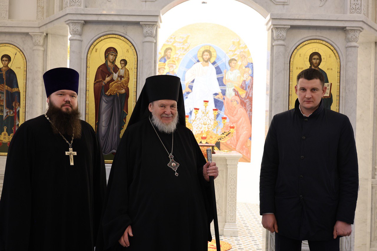 Глава округа Д. О. Семёнов от лица жителей поблагодарил владыку Николая за архипастырское посещение Павловского Посада и совместную молитву.