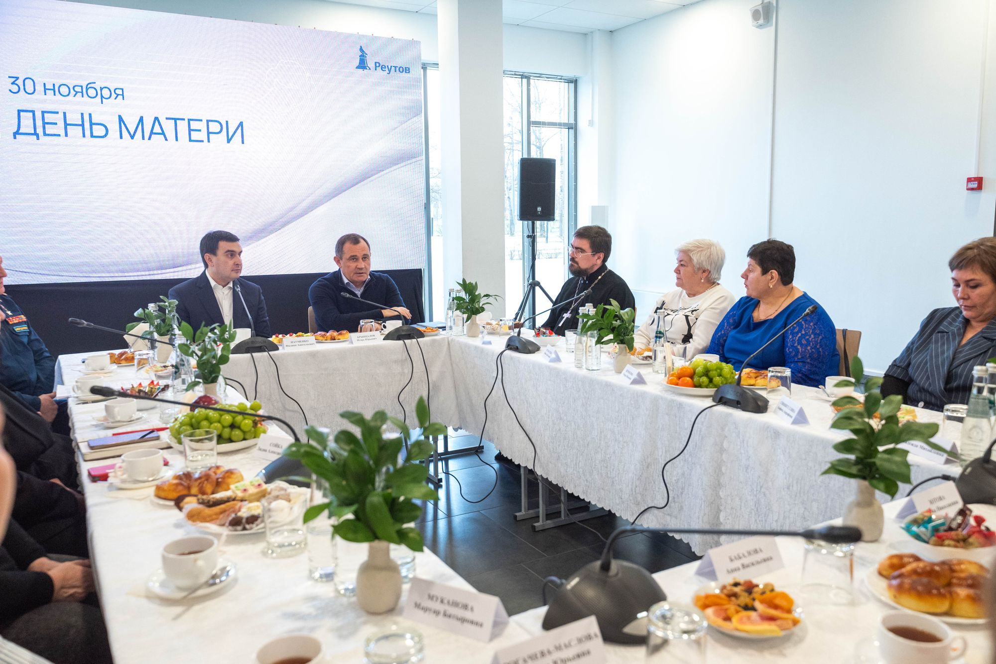 28 ноября, в преддверии Дня матери, в центре культуры и искусств города Реутова состоялась встреча с мамами участников Специальной военной операции, в которой приняли участие председатель Московской областной Думы И. Ю. Брынцалов, глава городского округа Реутов Ф. А. Науменко, благочинный Балашихинского церковного округа священник Михаил Конюхов, руководители городских общественных организаций, ветераны.