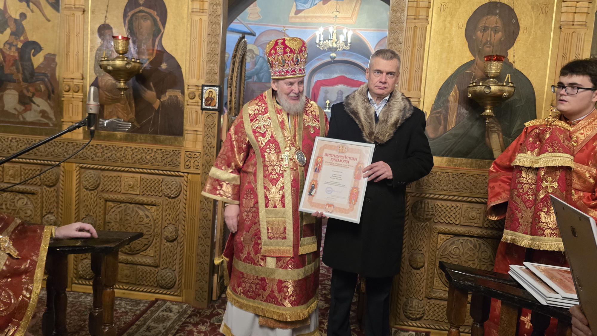 Затем отец настоятель поблагодарил владыку Николая за совершённое богослужение, после чего Его Преосвященство обратился к духовенству и молящимся с архипастырским словом и вручил архиерейские грамоты Балашихинской епархии благодетелям и труженикам храма: генерал-майору М. Ю. Пантелееву, директору радиоканала «Вера, Надежда, Любовь» Р. А. Торгашину, генеральному директору предприятия «Делер» Д. В. Фролкину, социальному работнику и члену приходской ревизионной комиссии И. А. Цветковой, секретарю-делопроизводителю Иоанно-Богословской гимназии Н. А. Сэкэряну, заведующей канцелярией И. В. Соловьевой, певчей Н. Ф. Жилкиной.