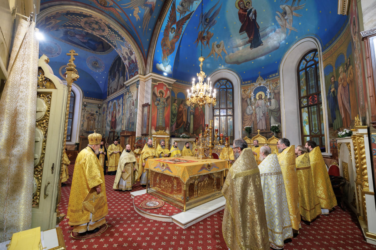 Протоиерей Алексий Михаленя зачитал поздравительный адрес епископу Николаю от духовенства епархии, после чего Его Преосвященство обратился к сослужившему духовенству и молящимся с архипастырским словом.