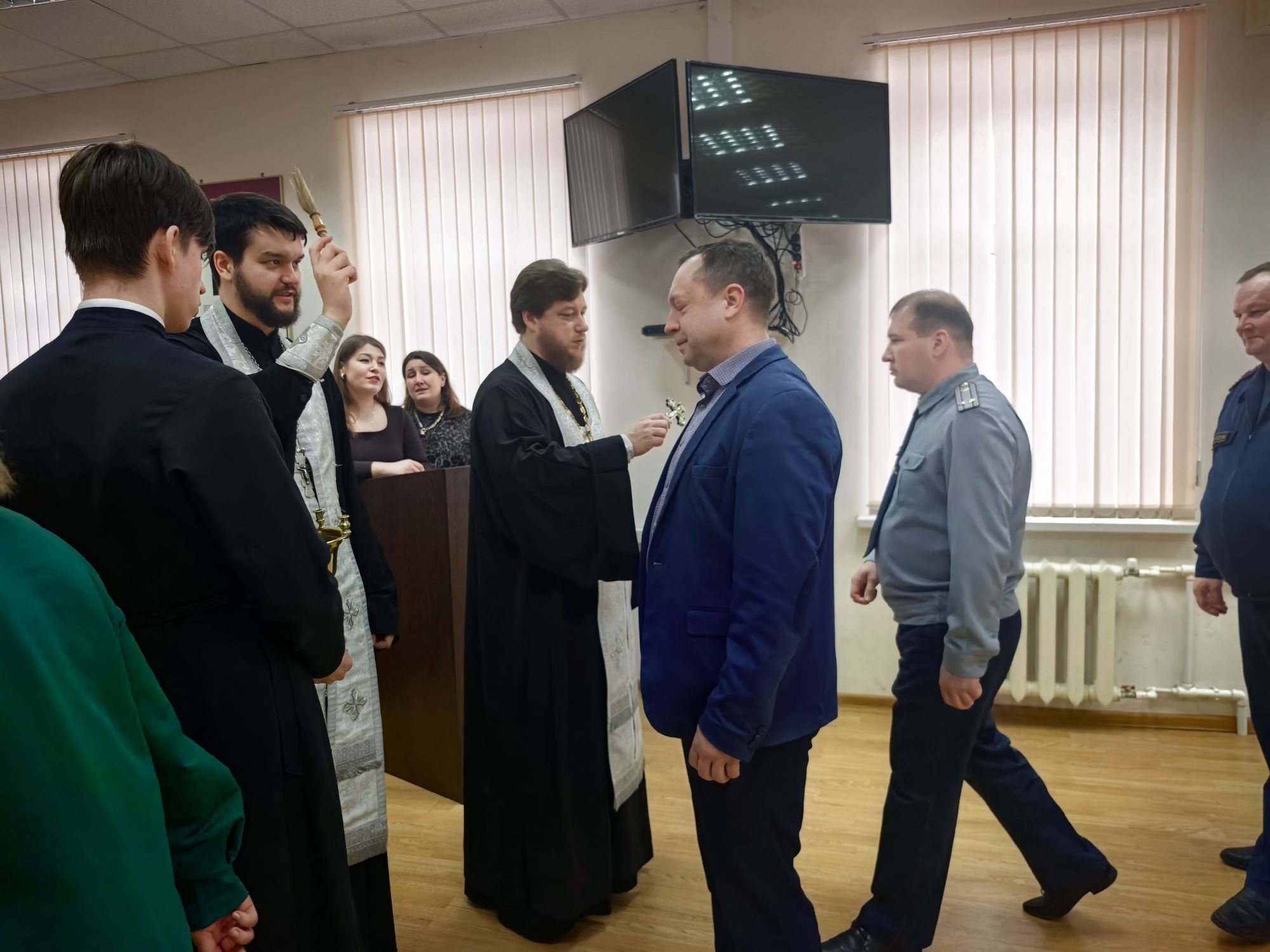 В завершение молебна священнослужители окропили помещения ГУФСИН святой водой.