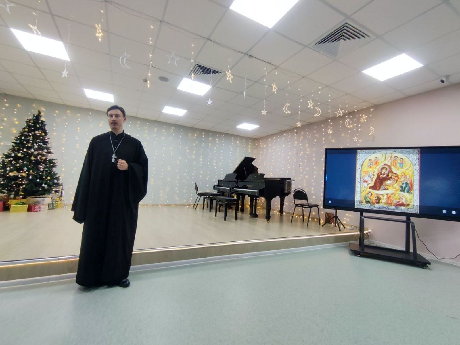 21 января настоятель Неопалимовского храма г. Балашиха священник Артемий Кравченко принял участие в праздничном концерте в детской школе искусств №3 г. Балашиха, организованном в рамках программы «XXI век - эпоха духовного просвещения», и обратился к собравшимся с пастырским словом.