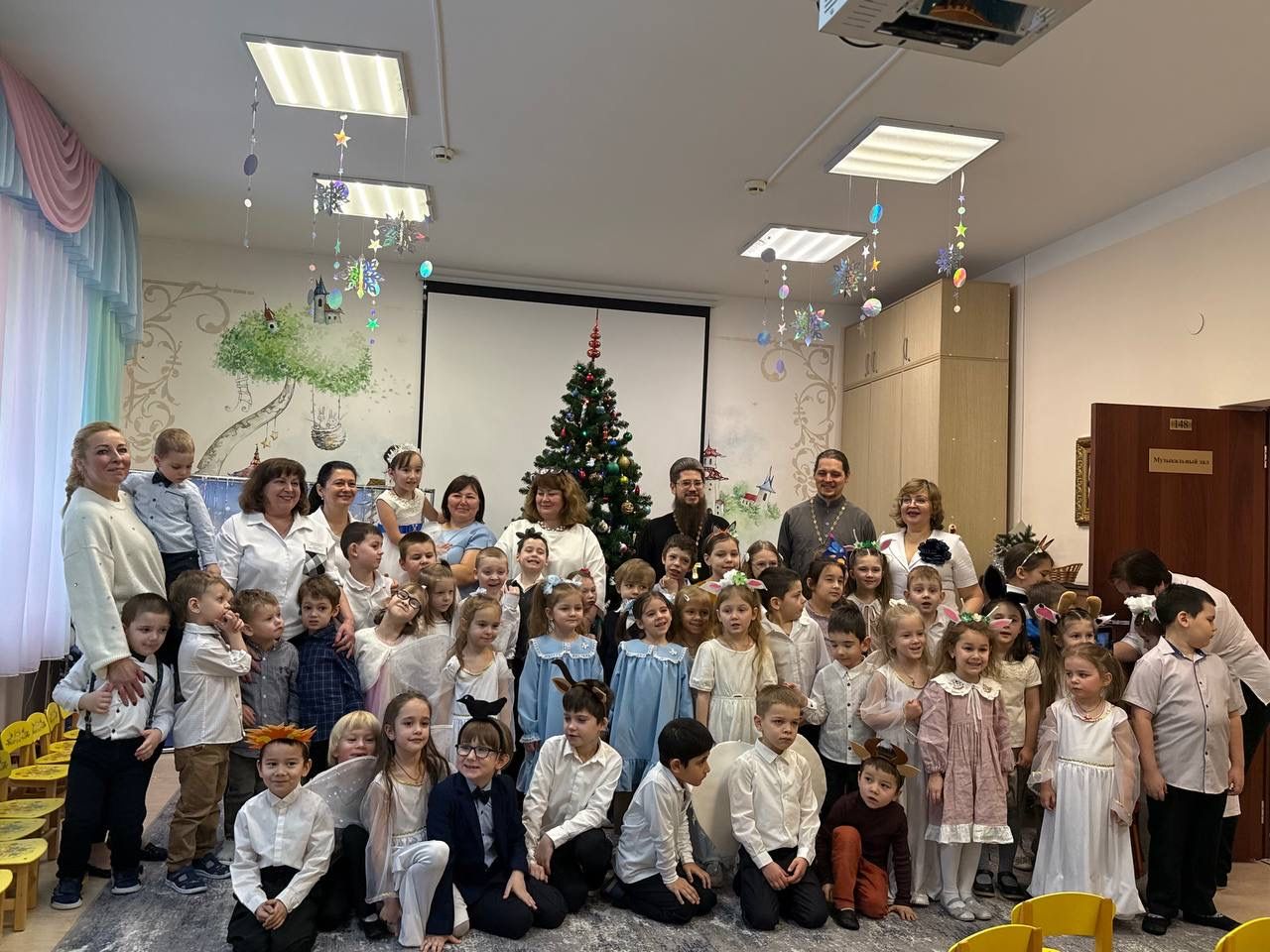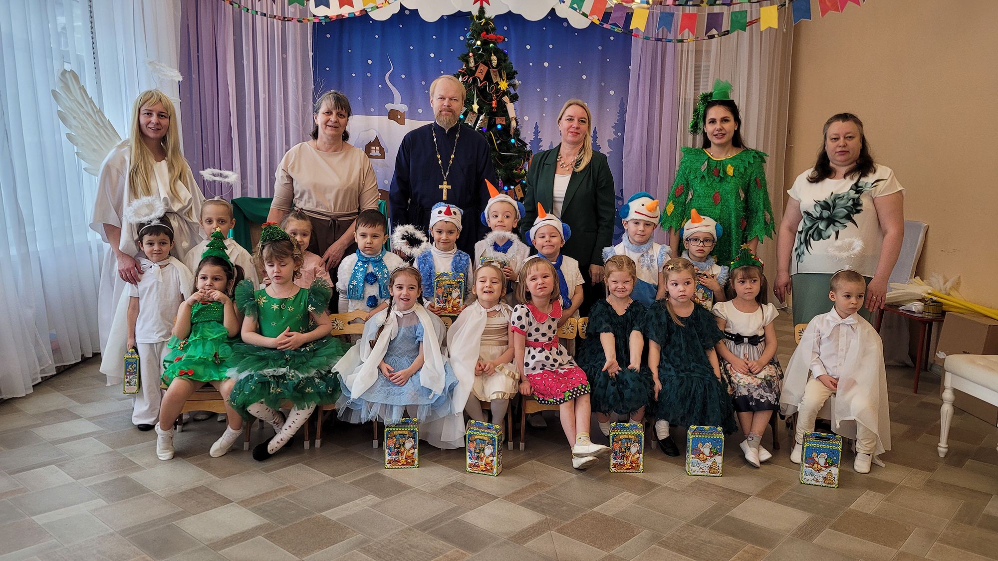 Воспитанники воскресной школы «Лествица» при Державном храме Наукограда с настоятелем священником Димитрием Третьяковым поздравили ребят во втором корпусе детского сада №18 «Росинка» города Фрязино.