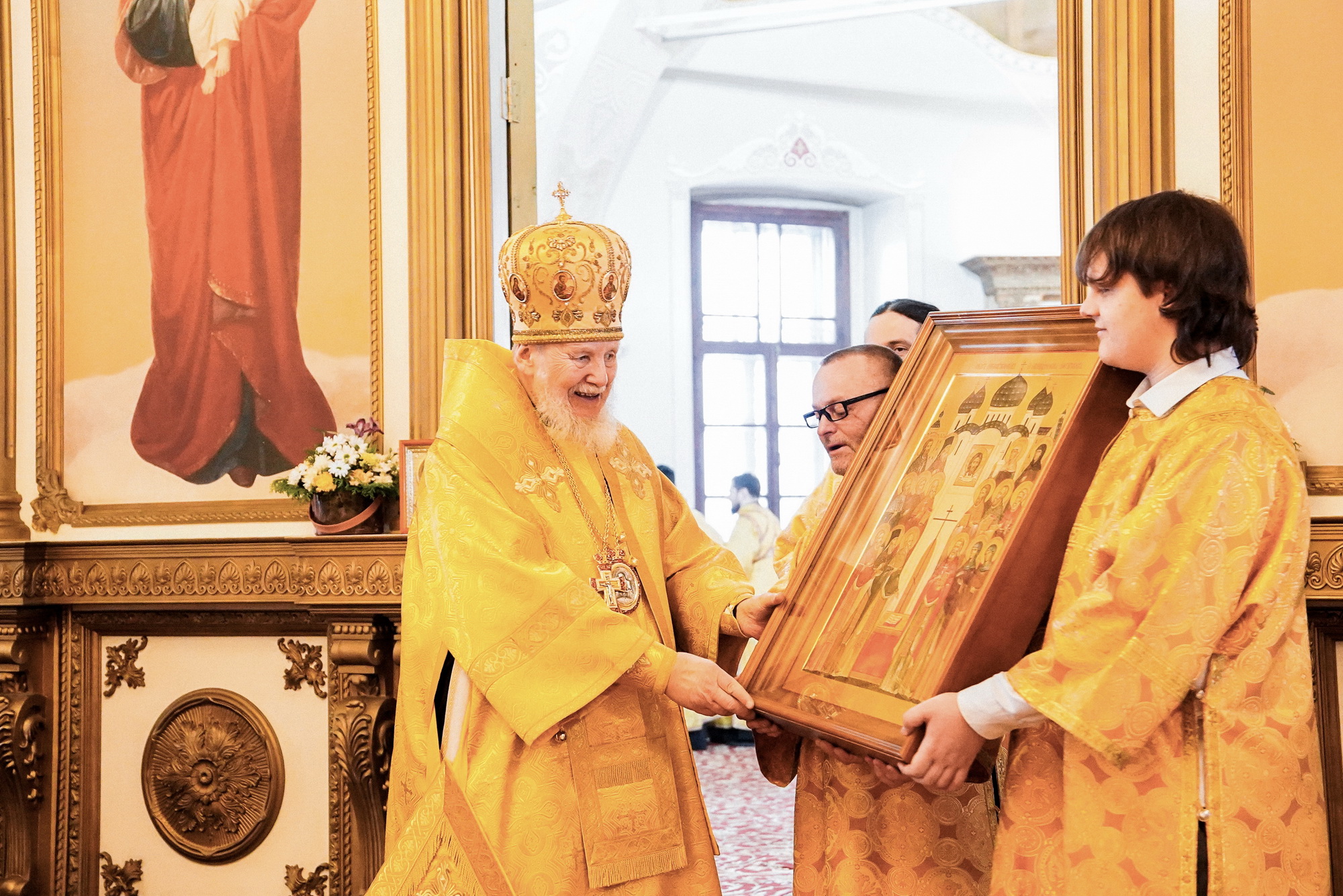 По окончании Литургии перед иконой новомучеников и исповедников Шатурских было совершено славление и возглашены многолетия, после чего отец благочинный от лица сослужившего духовенства и богомольцев поздравил владыку Николая с днём тезоименитства, поблагодарил за совершённое богослужение и преподнёс ему икону новомучеников и исповедников Шатурских.