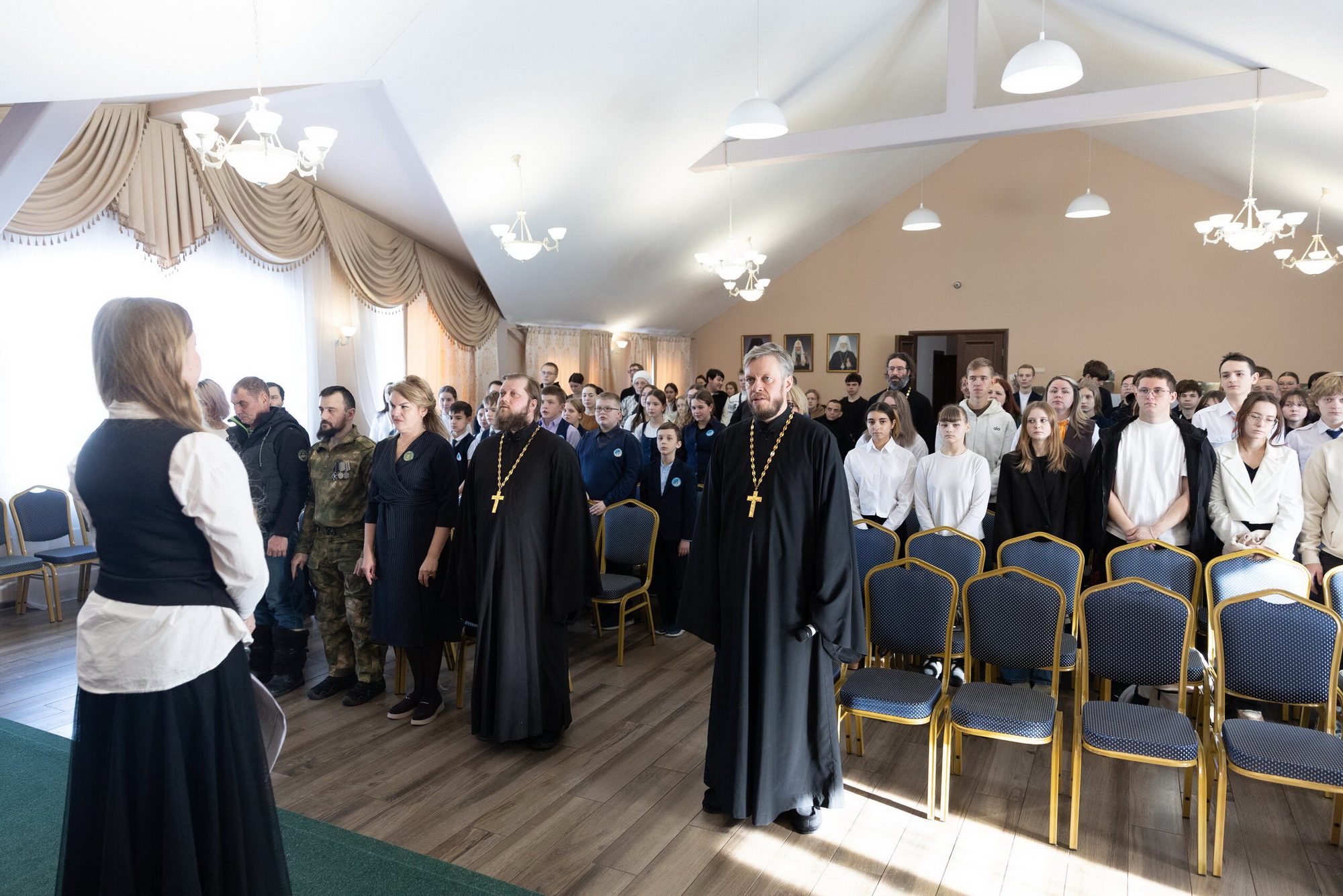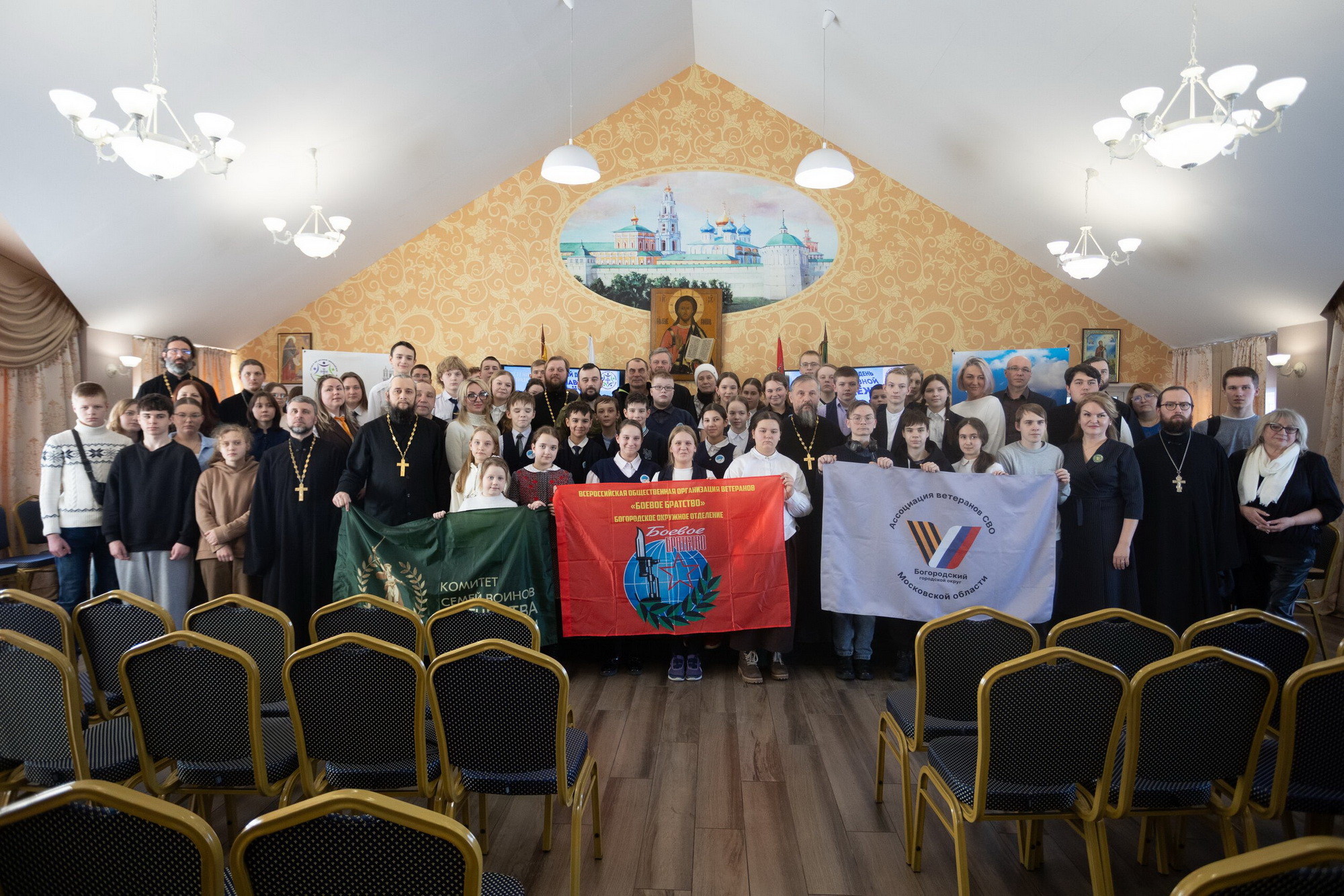 С приветственными словами к собравшимся обратились председатель Епархиального отдела по делам молодёжи священник Димитрий Филин, председатель молодёжного совета Подмосковья г. Ногинска Максим Андреевич Зотов, руководитель комитета семей воинов Отечества Московской области Марина Анатольевна Мигунова.