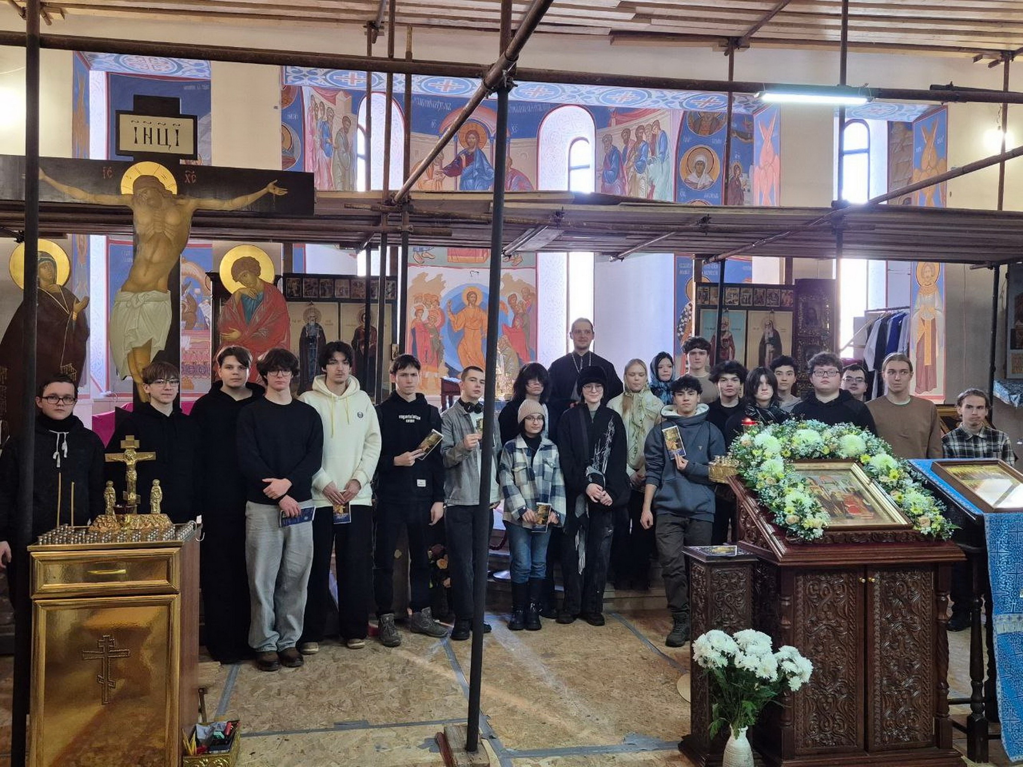 В этот же день студенты Щёлковского колледжа посетили Державный храм города Фрязино и встретились с клириком храма священником Владимиром Тарасюком. Отец Владимир рассказал ребятам историю возникновения храма и провёл экскурсию.
