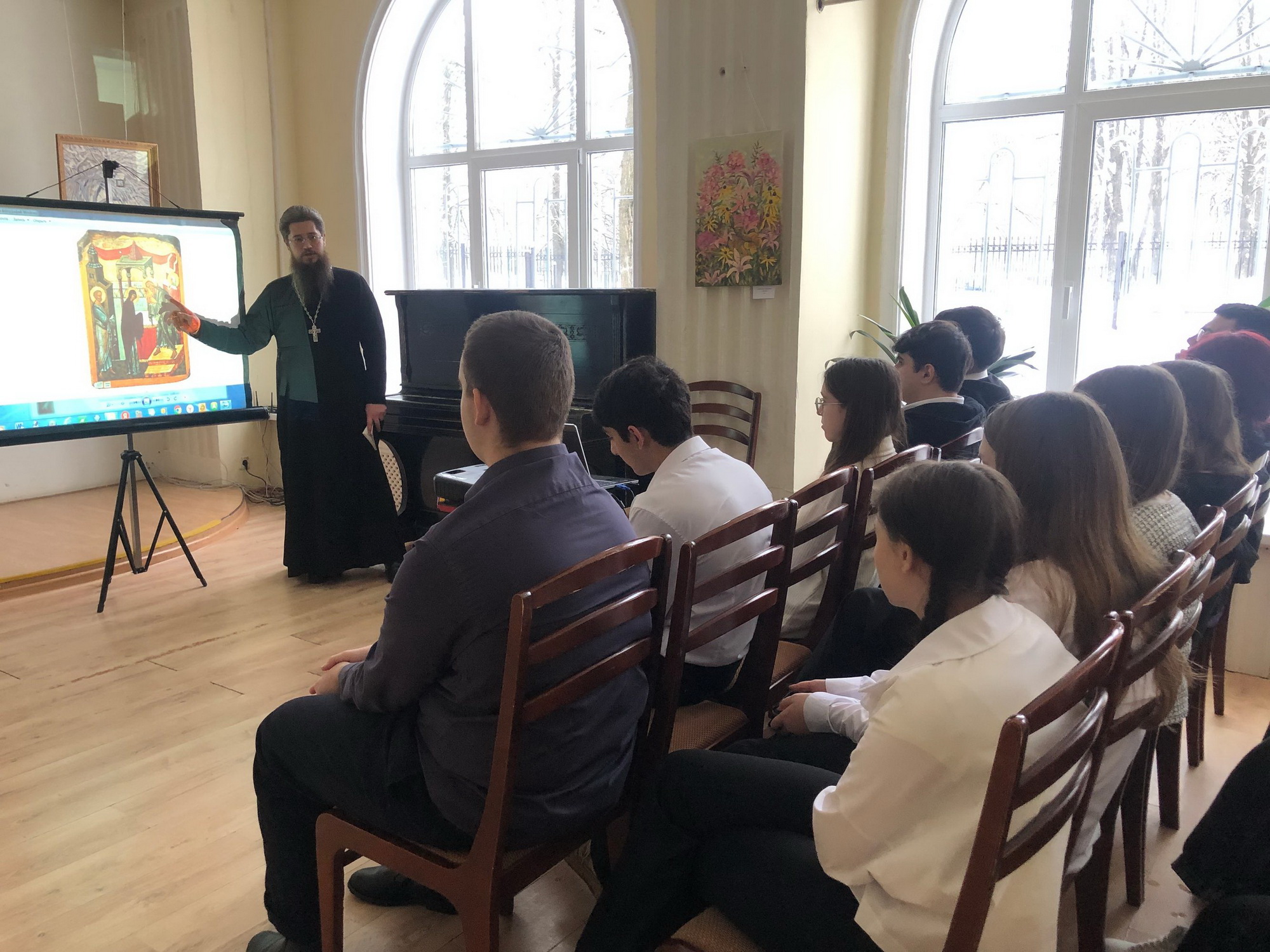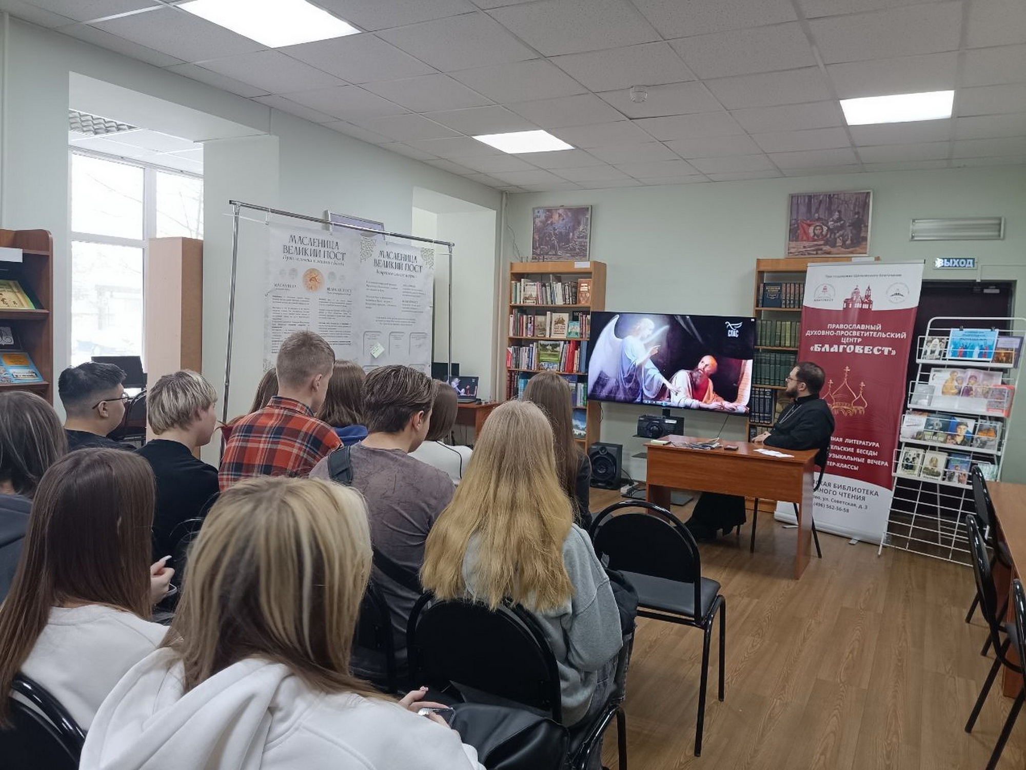 13 февраля в культурном центре города Фрязино состоялась встреча настоятеля Державного храма Наукограда священника Димитрия Третьякова с девятиклассниками школы №2 города Фрязино. Батюшка рассказал ребятам о смысле и значении праздника Сретения Господня.