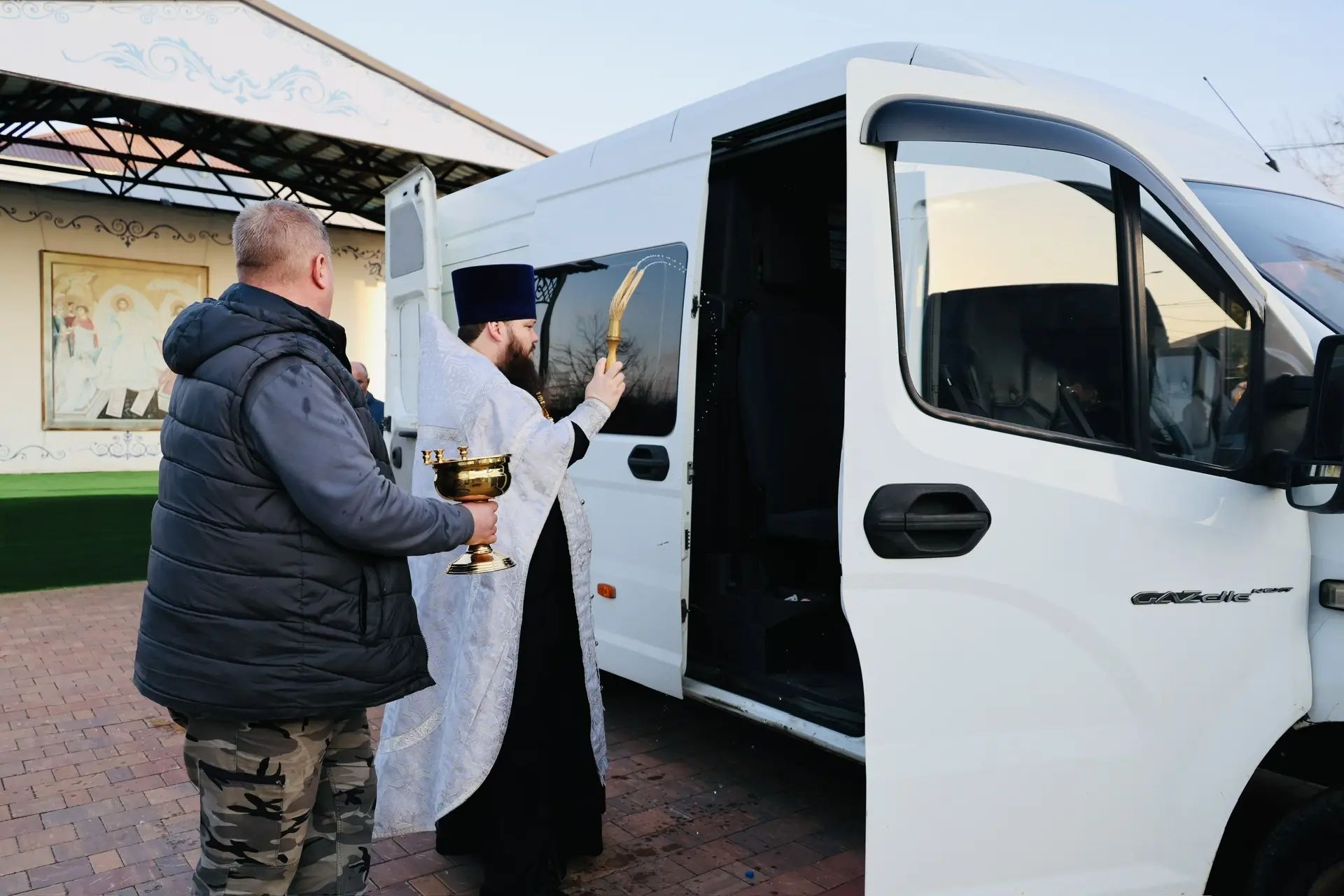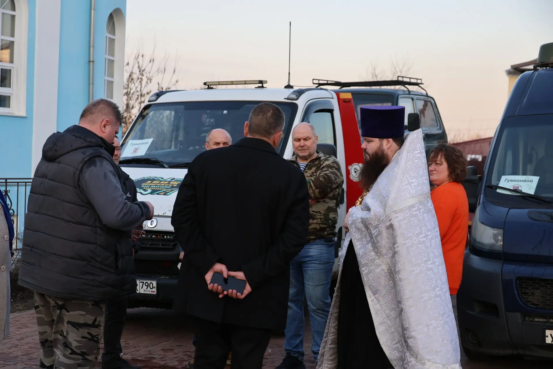 За богослужением молились председатель окружного совета депутатов Р. И. Тикунов и участники гуманитарного конвоя.