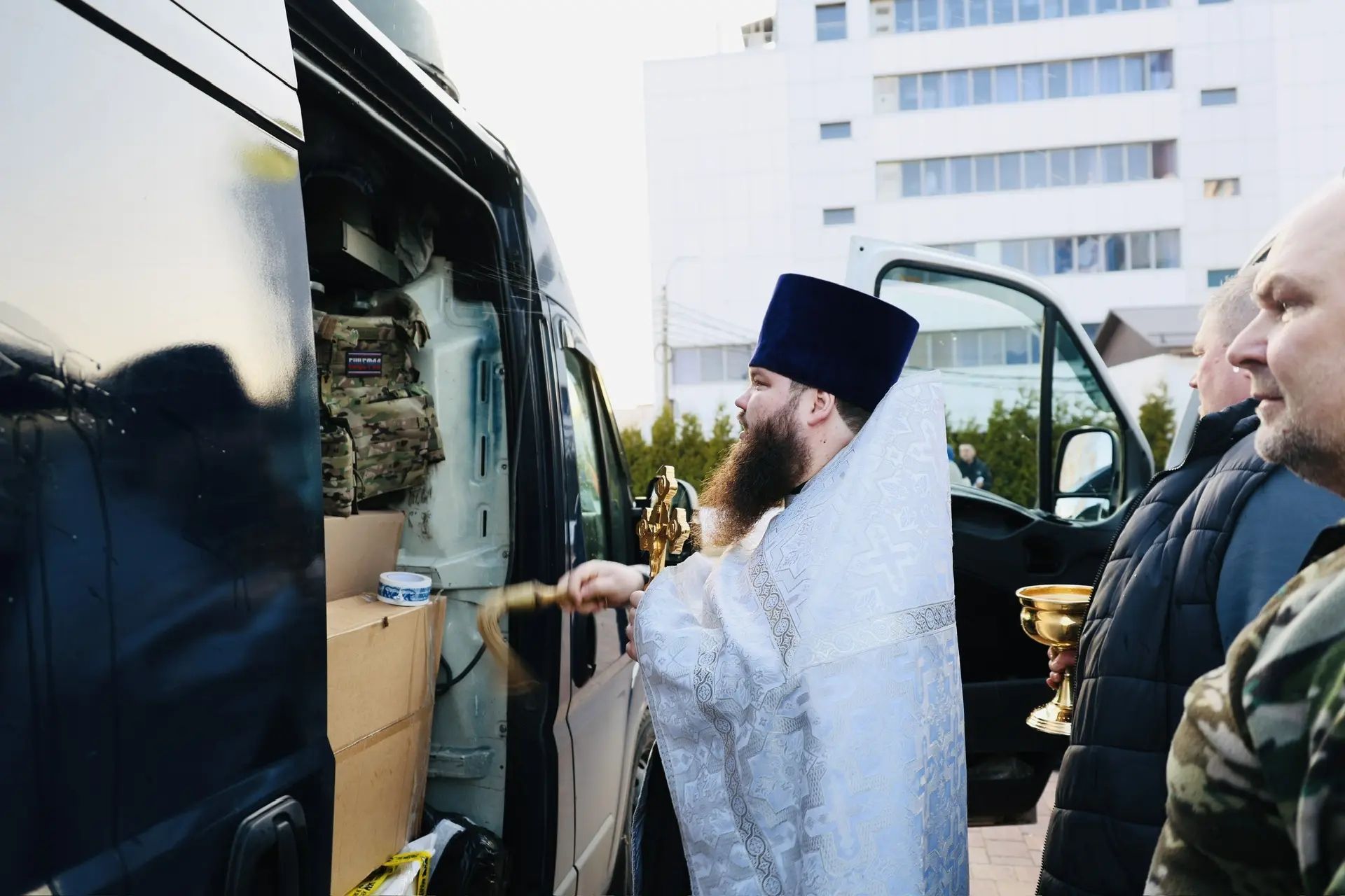 24 марта в Казанском храме города Павловский Посад благочинный Павлово-Посадского церковного округа священник Александр Анохин совершил молебен перед очередной отправкой гуманитарного груза для мобилизованных и служащих по контракту в зоне проведения Специальной военной операции из Павлово-Посадского городского округа.