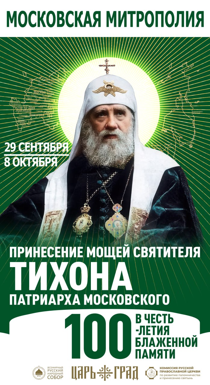 С 29 сентября по 7 октября ковчег с мощами святителя Тихона, Патриарха Московского, будет принесен во все епархии Московской митрополии.